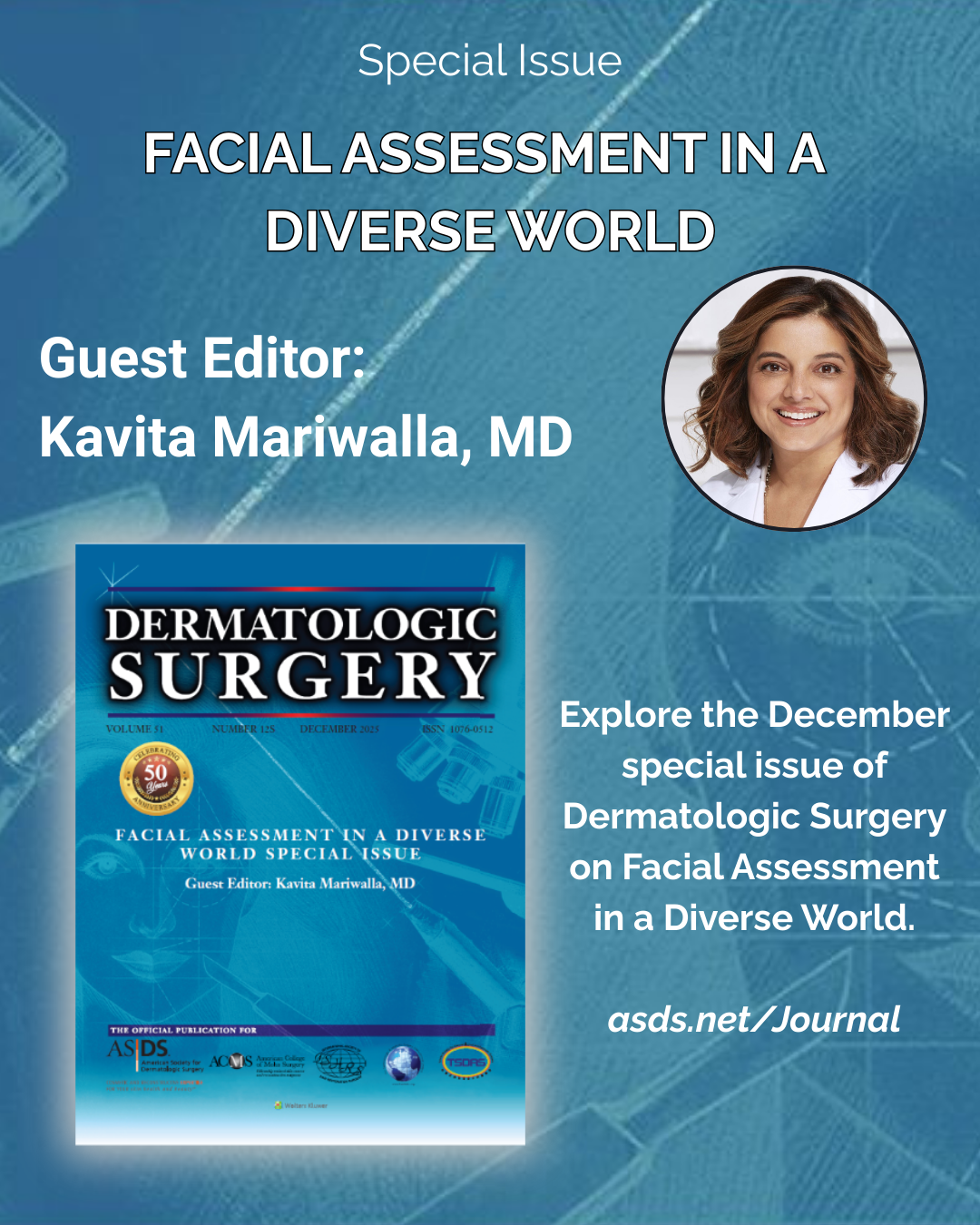 The December issue of Dermatologic Surgery includes a supplemental issue dedicated to helping dermatologists take an individualized, whole-face approach to rejuvenation in aesthetic dermatology. ASDS President Kavita Mariwalla, MD, served as the Guest Editor and lead author.