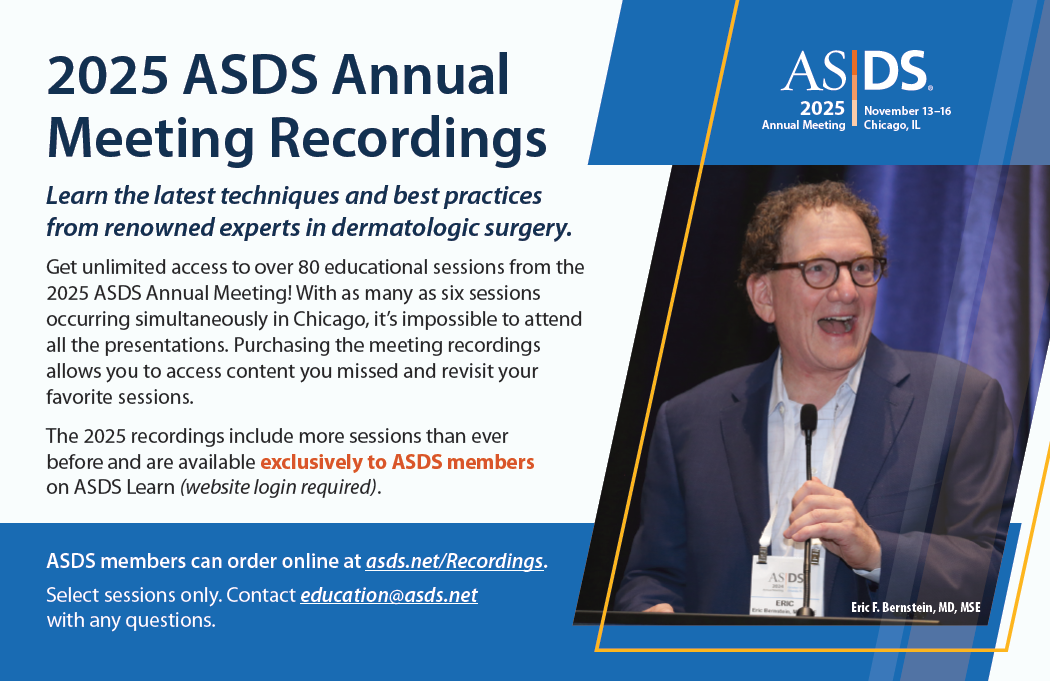 Get unlimited access to over 80 educational sessions with the 2025 ASDS Annual Meeting Recordings. Meeting attendees can save up to $200. Log in to view the pricing in your ASDS Member Portal.