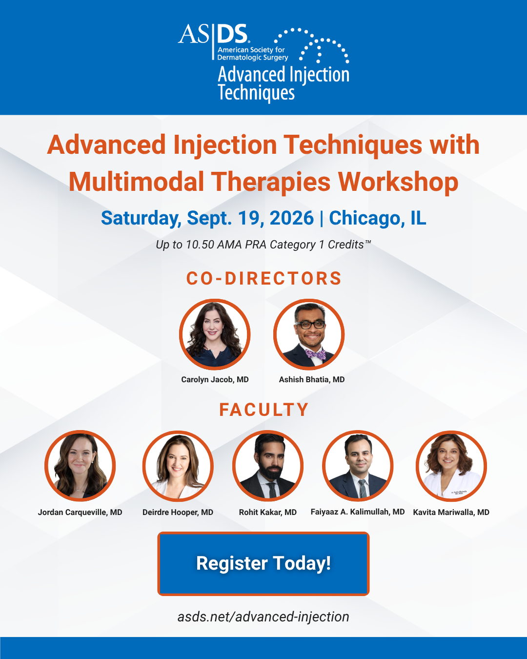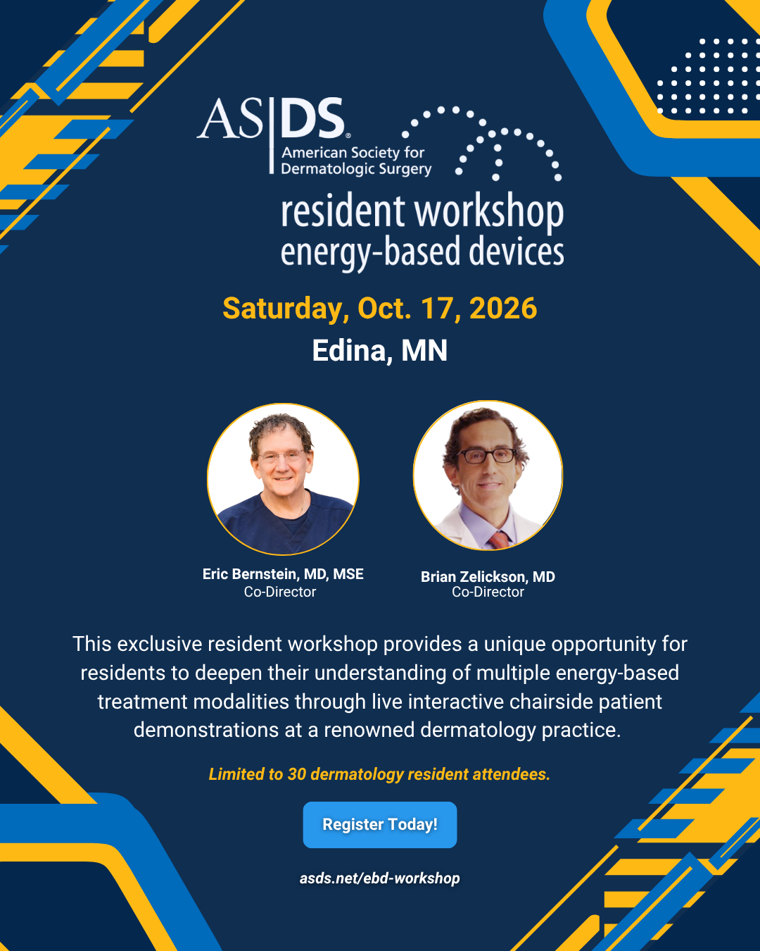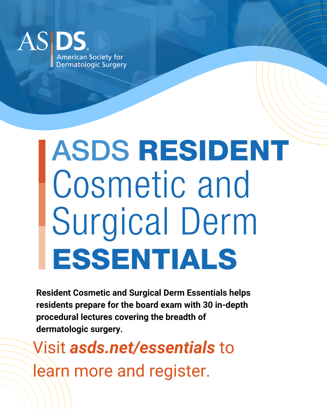 Residents – Are you ready to level up your cosmetic procedures? Join ASDS experts April 17-19 in Dallas, TX, at the 2026 Premier Annual Resident Cosmetic Symposium.