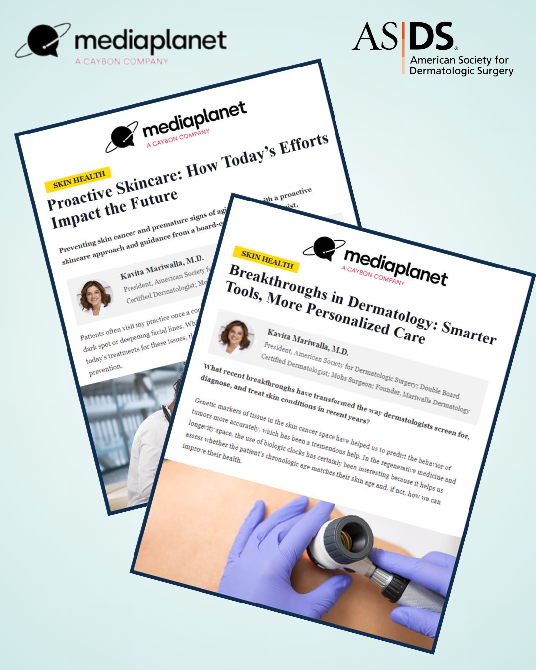 ASDS President Kavita Mariwalla, MD, contributed to two articles for Mediaplanet’s Skin Health campaign with USA Today. Dr. Mariwalla’s articles cover breakthroughs in dermatology and proactive skin care guidance.