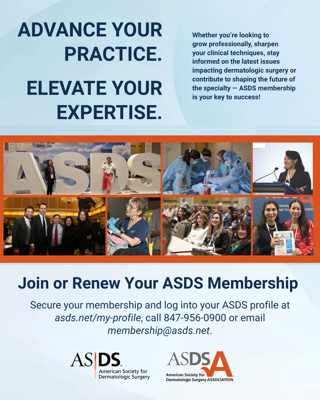 Whether you’re looking to grow professionally, sharpen your clinical techniques, stay informed on the latest issues impacting dermatologic surgery or contribute to shaping the future of the specialty — ASDS membership is your key to success!