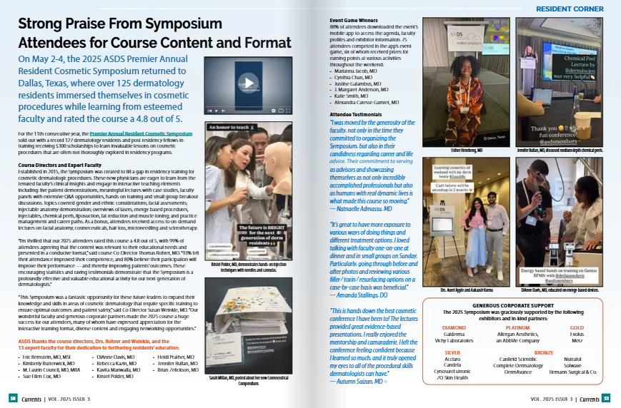 “This is hands down the best cosmetic conference I have been to! The lectures provided great evidence-based presentations. I really enjoyed the mentorship and camaraderie. I left the conference feeling confident because I learned so much, and it truly opened my eyes to all of the procedural skills dermatologists can have.”